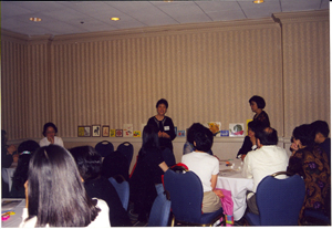 趙蘭芬女士曾多次參加美東中文學校年會,將她的教學經驗和技藝,傳授給各校老師.並交換心得.