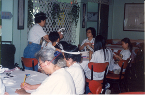 1998年7月4日, 趙蘭芬女士應慈濟邀請, 教剪紙帽藝術.